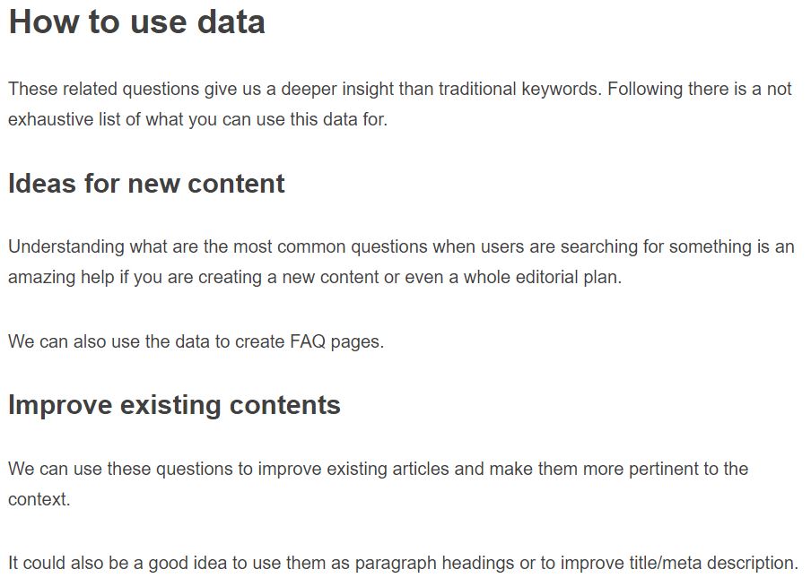 ‘Scraping People also asked on Google Search’ is something I want to talk about because I found a really neat tool - just completely stumbled across it. I can't even remember how I found it and it's from a blog post by someone called Alessio Nittoli and they've done a blog post called ‘scraping people also asked’ on Google Search. So, people also asked, you have very likely seen it - it's the widget that's been introduced into the search results in 2015 and it gives hints about how search engines are trying to help users refine their search.